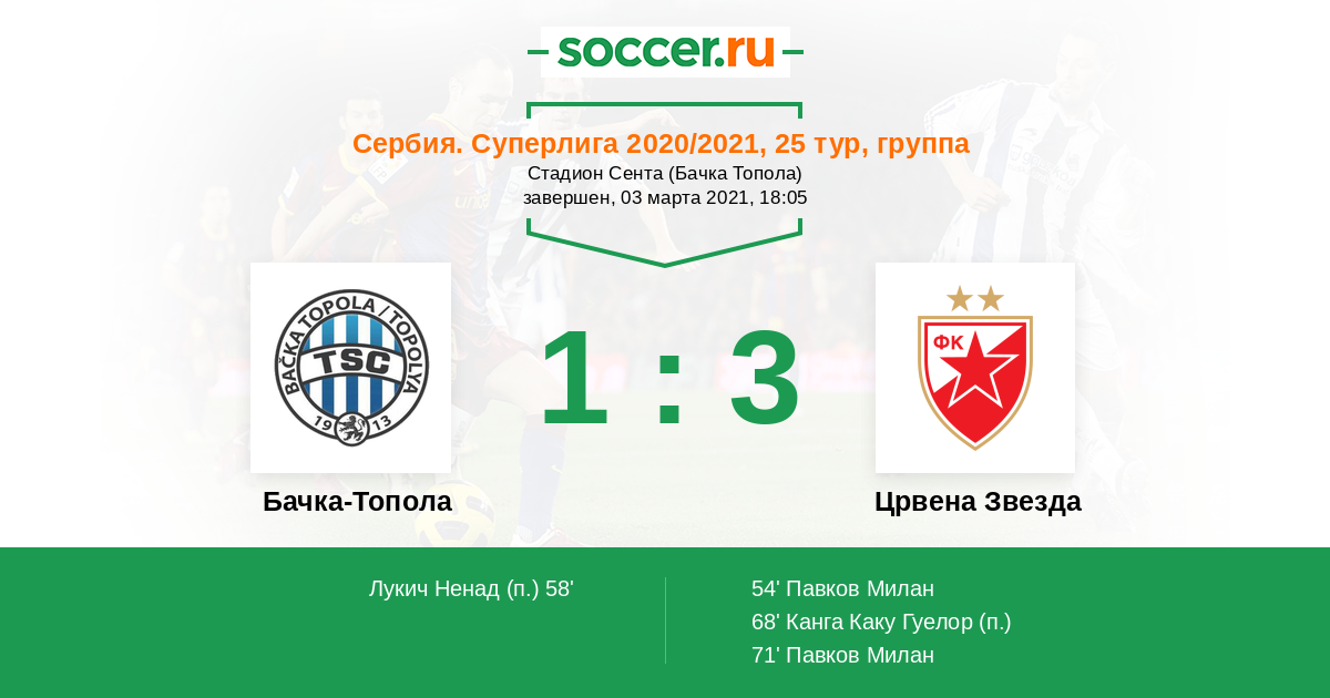 Протокол матча Бачка-Топола против Црвена Звезда