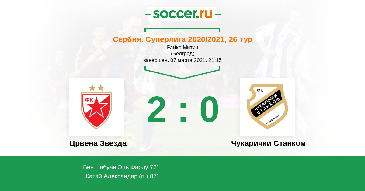 Протокол матча Црвена Звезда против Чукарички Станком