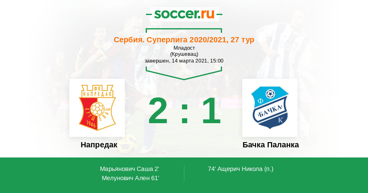 Протокол матча Напредак против Бачка Паланка