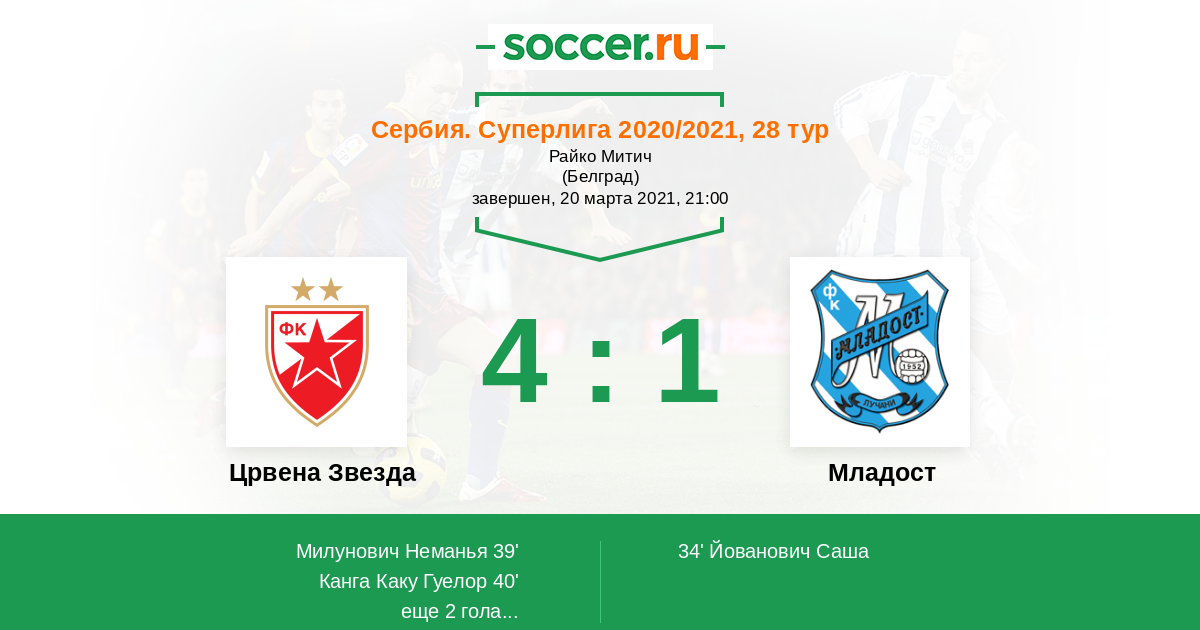 Протокол матча Црвена Звезда против Младост