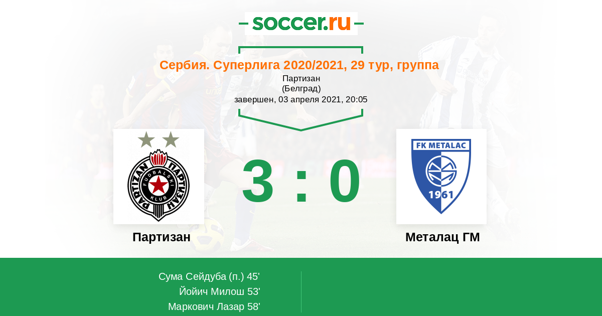 58' (3:0) Маркович Лазар (50)