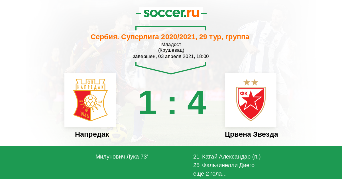 Протокол матча Напредак против Црвена Звезда