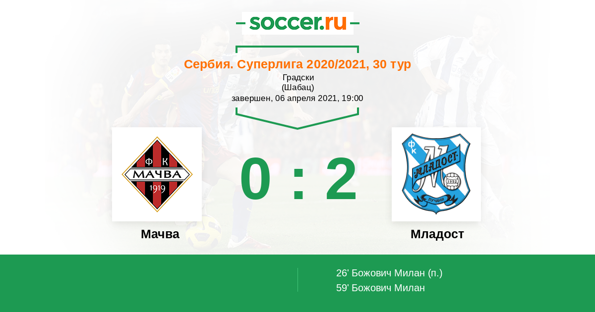 Протокол матча Мачва против Младост
