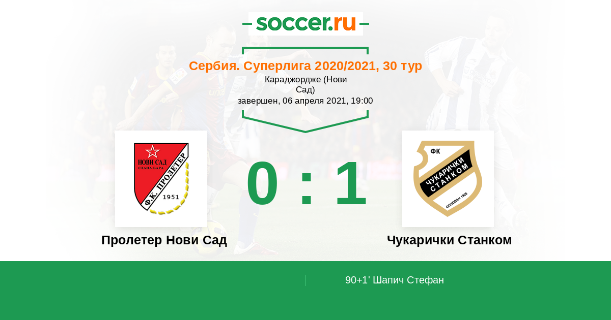 Протокол матча Пролетер Нови Сад против Чукарички Станком