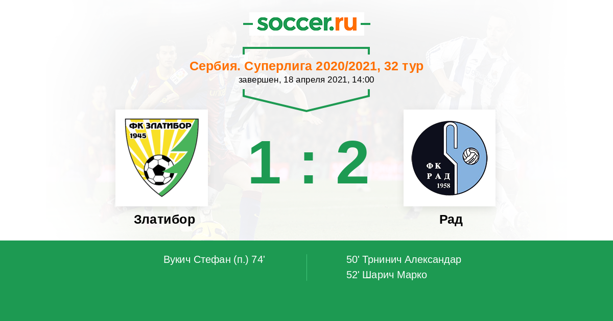 74' (1:2) Вукич Стефан (19)