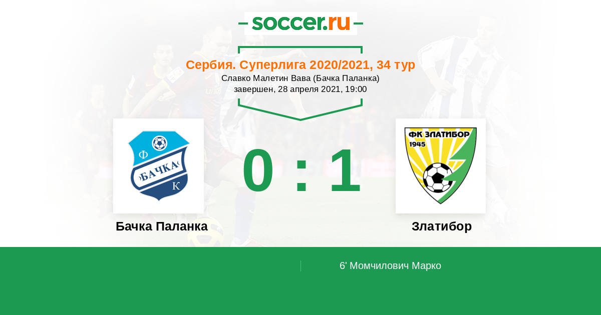 Протокол матча Бачка Паланка против Златибор
