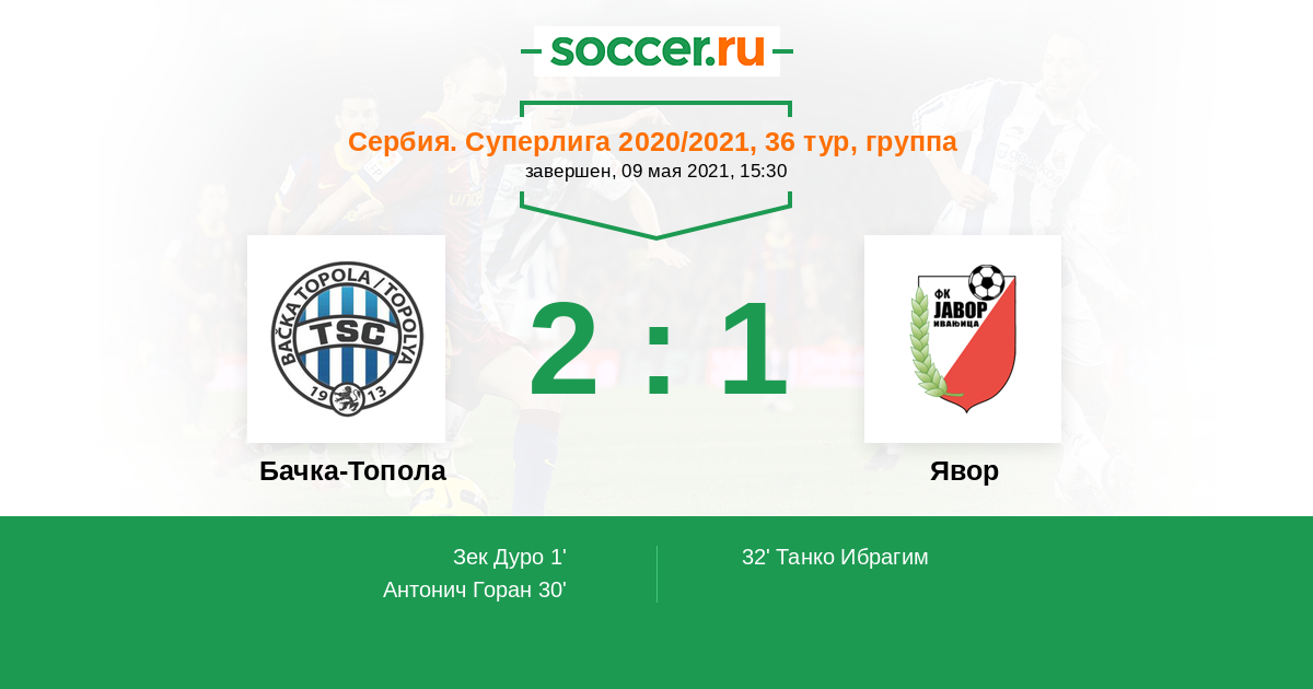 Протокол матча Бачка-Топола против Явор