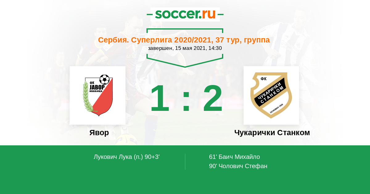 Протокол матча Явор против Чукарички Станком