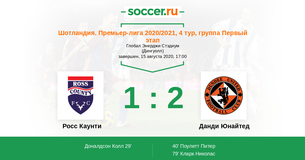 Протокол матча Росс Каунти против Данди Юнайтед