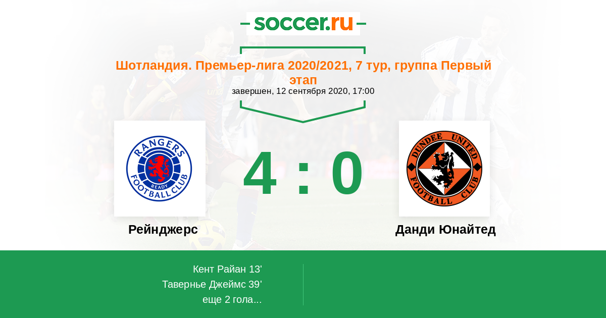 Протокол матча Рейнджерс против Данди Юнайтед