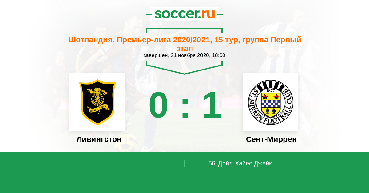 Протокол матча Ливингстон против Сент-Миррен