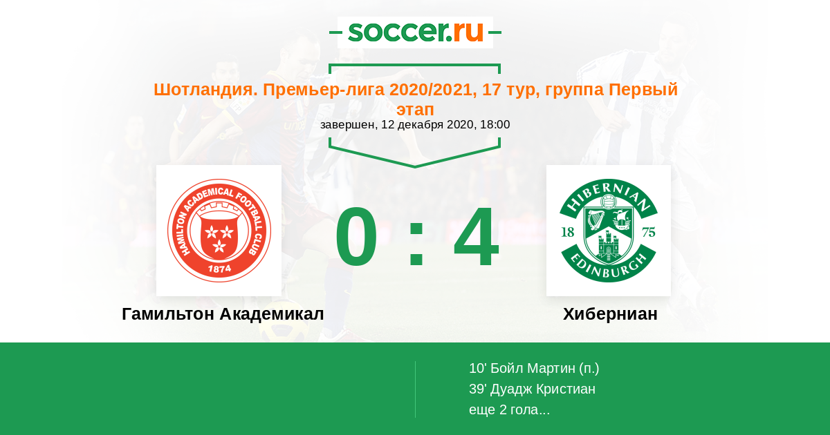 Протокол матча Гамильтон Академикал против Хиберниан