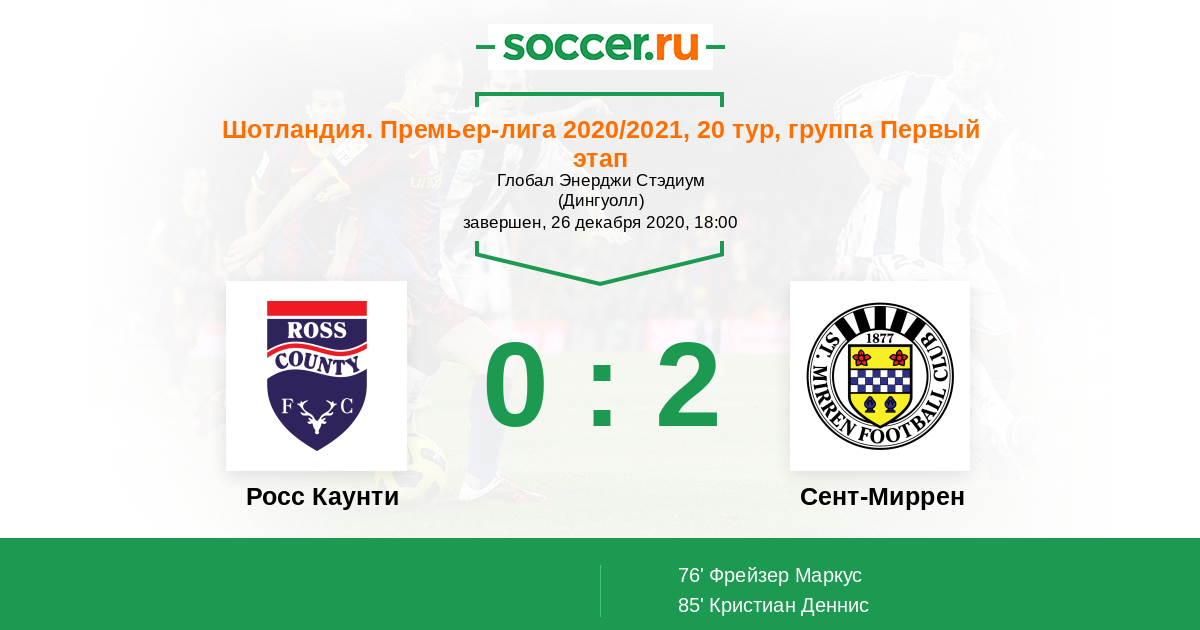 Протокол матча Росс Каунти против Сент-Миррен