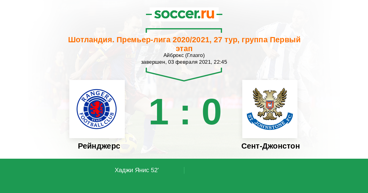 Протокол матча Рейнджерс против Сент-Джонстон
