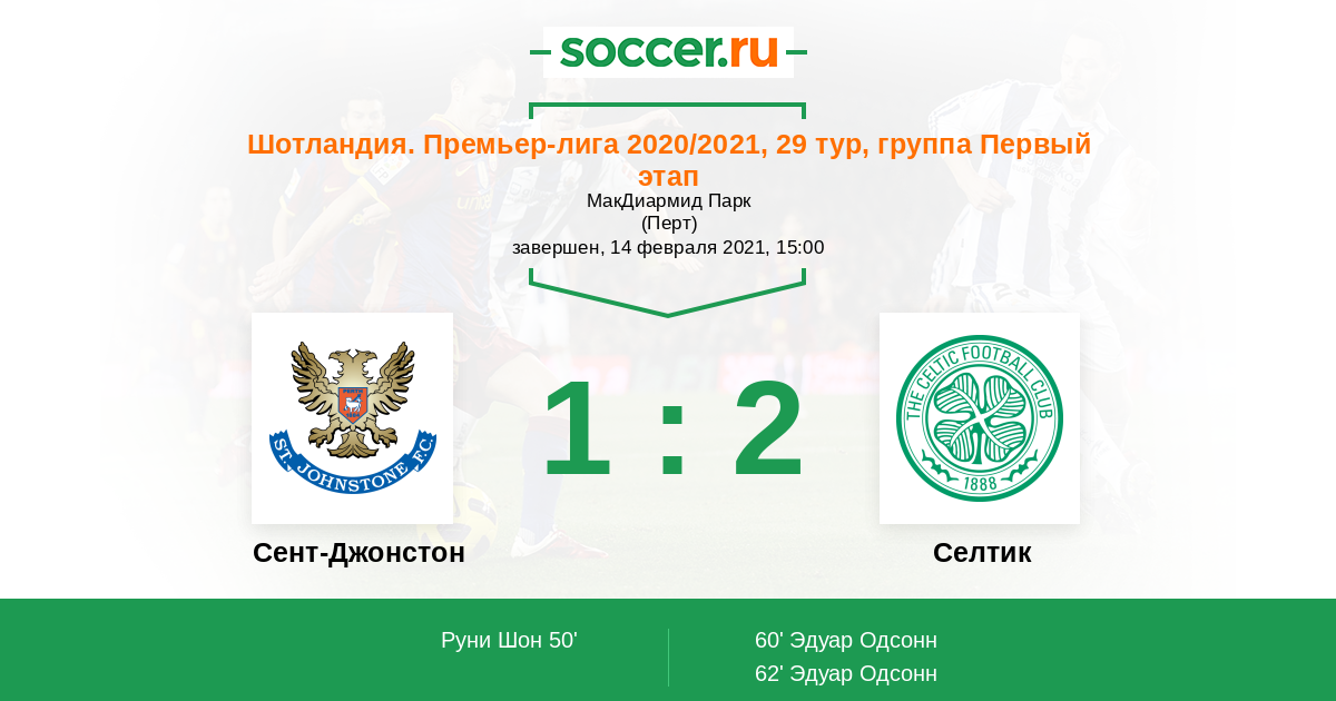 Протокол матча Сент-Джонстон против Селтик