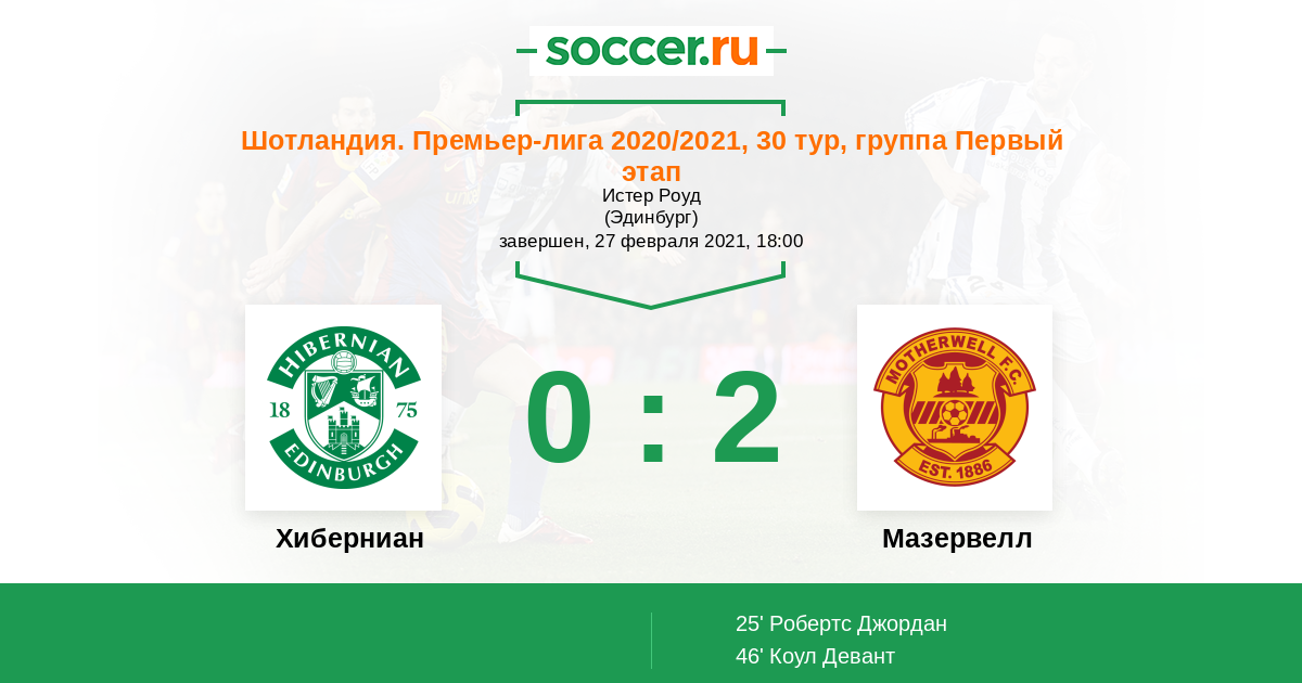 Протокол матча Хиберниан против Мазервелл