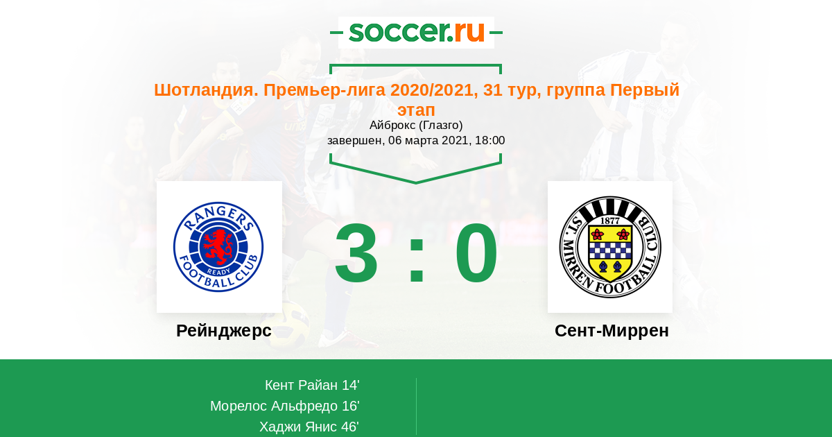 Протокол матча Рейнджерс против Сент-Миррен