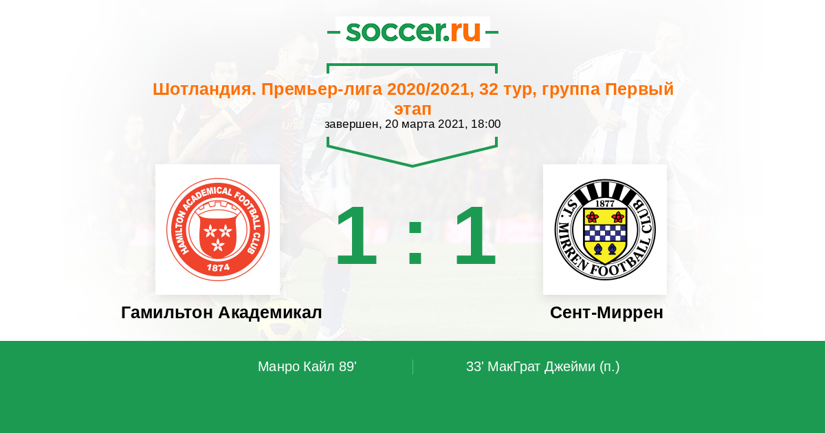 Протокол матча Гамильтон Академикал против Сент-Миррен