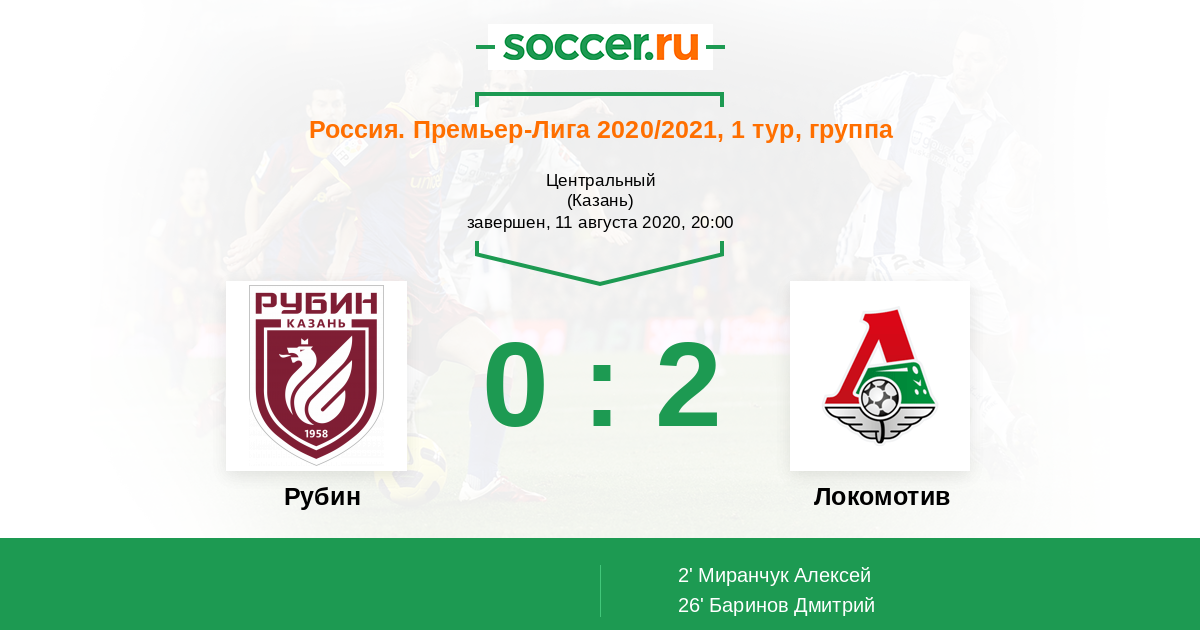 Протокол матча Рубин против Локомотив