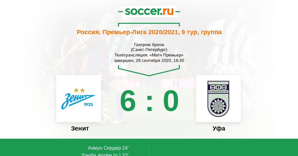 Протокол матча Зенит против Уфа