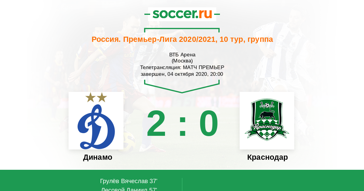 Протокол матча Динамо против Краснодар