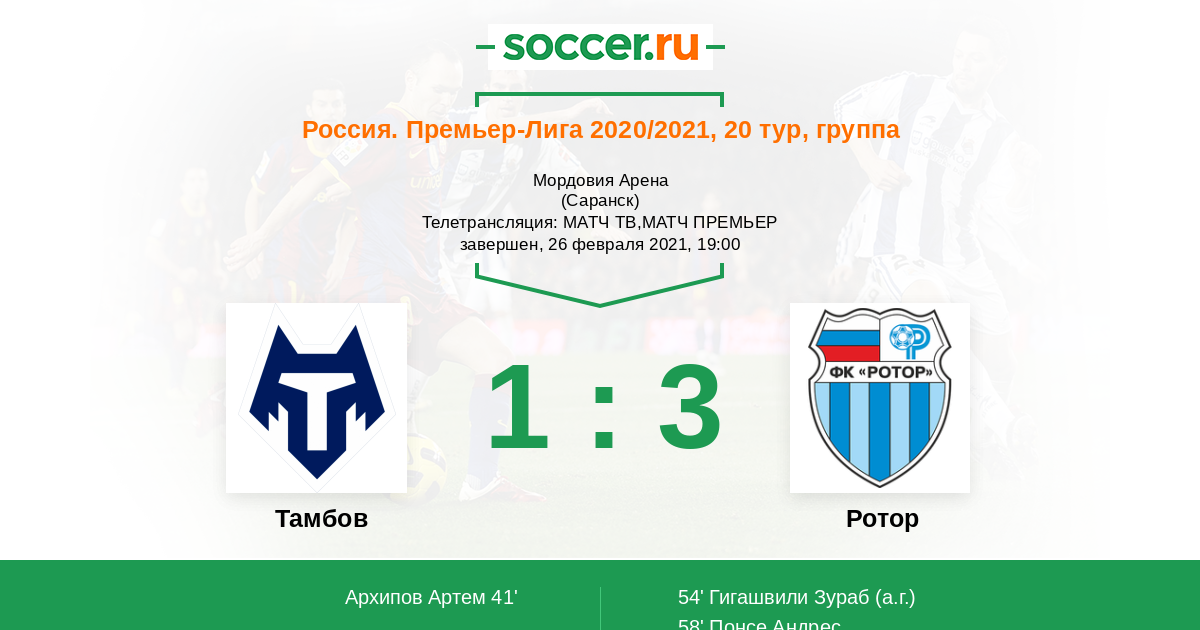 Протокол матча Тамбов против Ротор