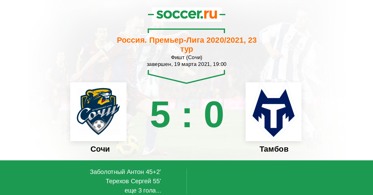Протокол матча Сочи против Тамбов