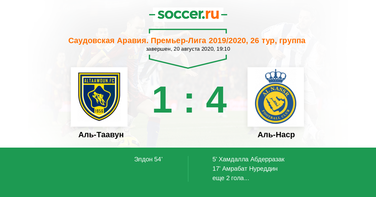 Протокол матча Аль-Таавун против Аль-Наср