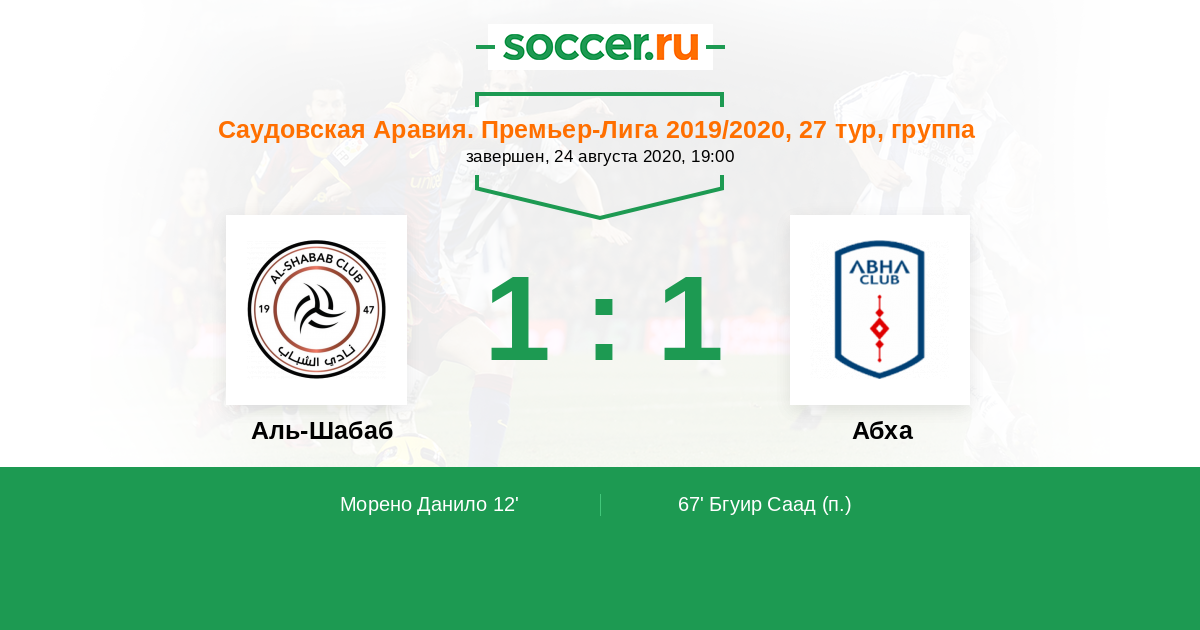 Протокол матча Аль-Шабаб против Абха