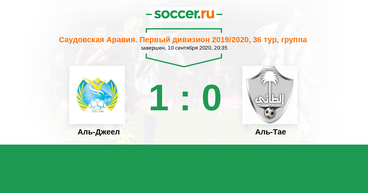 Саудовская Аравия. Первый дивизион 24.09.2010 Аль-Джеел Логотип футбольный клуб Аль-Джеел (Аль-Хаса) 1:1 Логотип футбольный клуб Аль-Тае (Хаиль) Аль-Тае