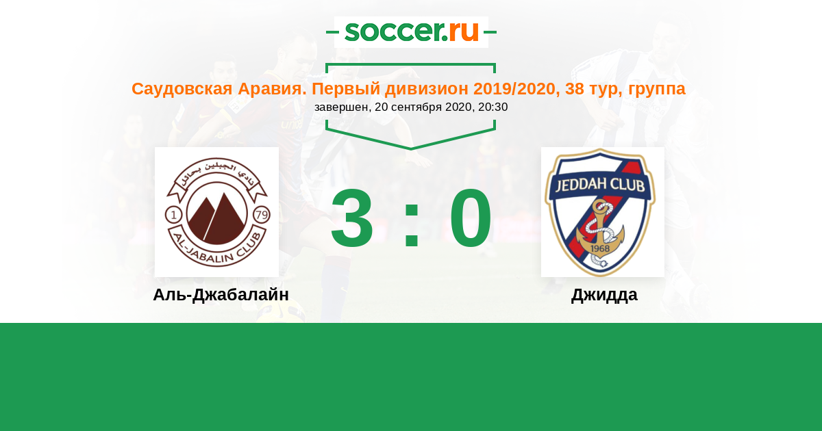 Саудовская Аравия. Первый дивизион 28.10.2020 Джидда Логотип футбольный клуб Джидда 1:2 Логотип футбольный клуб Аль-Джабалайн (Хаиль) Аль-Джабалайн
