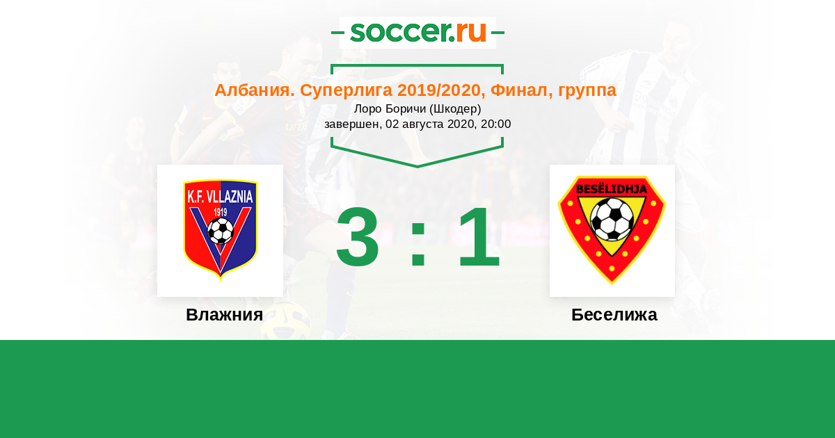 Албания. Суперлига 02.08.2020 Влажния   3:1 Логотип футбольный клуб Беселижа (Леже) Беселижа