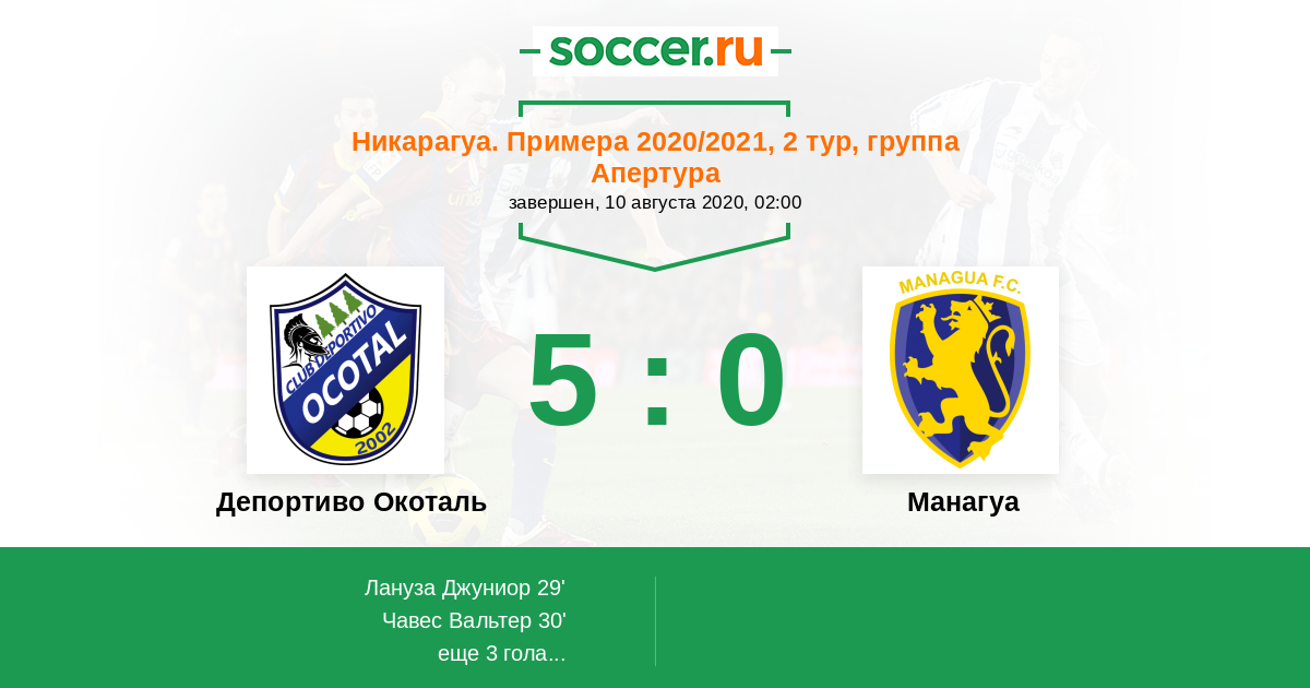 Протокол матча Депортиво Окоталь против Манагуа