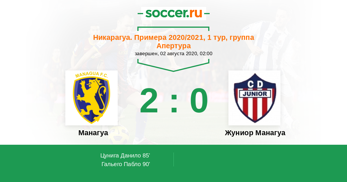 Протокол матча Манагуа против Жуниор Манагуа