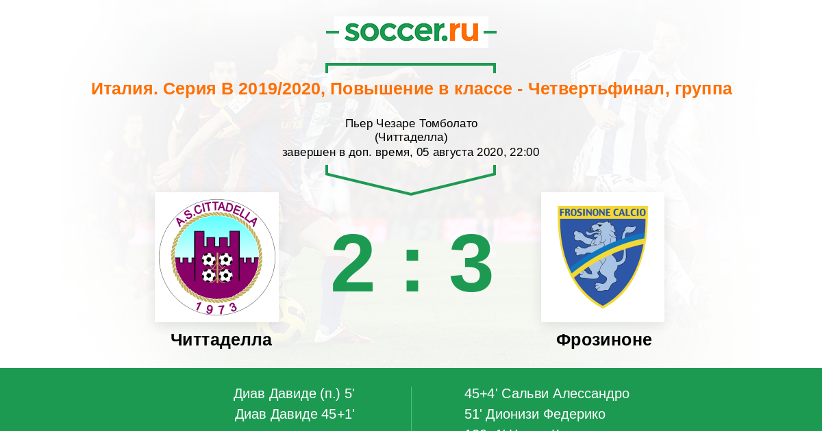 45+1' (2:0) Диав Давиде (9) (Росафио Марко (17))