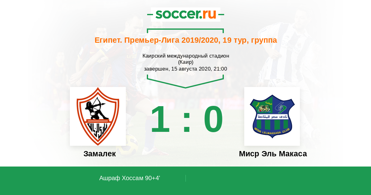 Гол90+4' (1:0) Ашраф Хоссам (43)