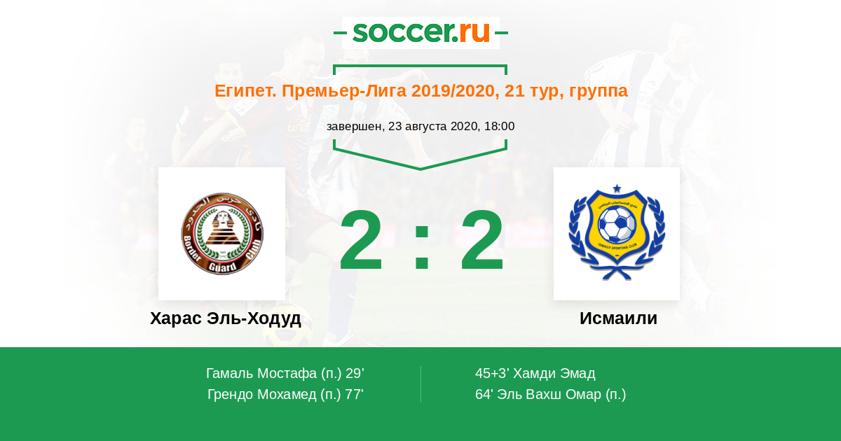 Протокол матча Харас Эль-Ходуд против Исмаили