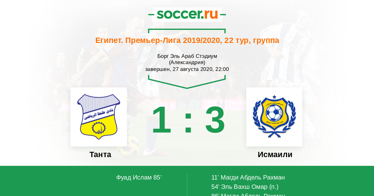 86' (1:3) Магди Абдель Рахман (19) (Эль-Шами Мохамед)