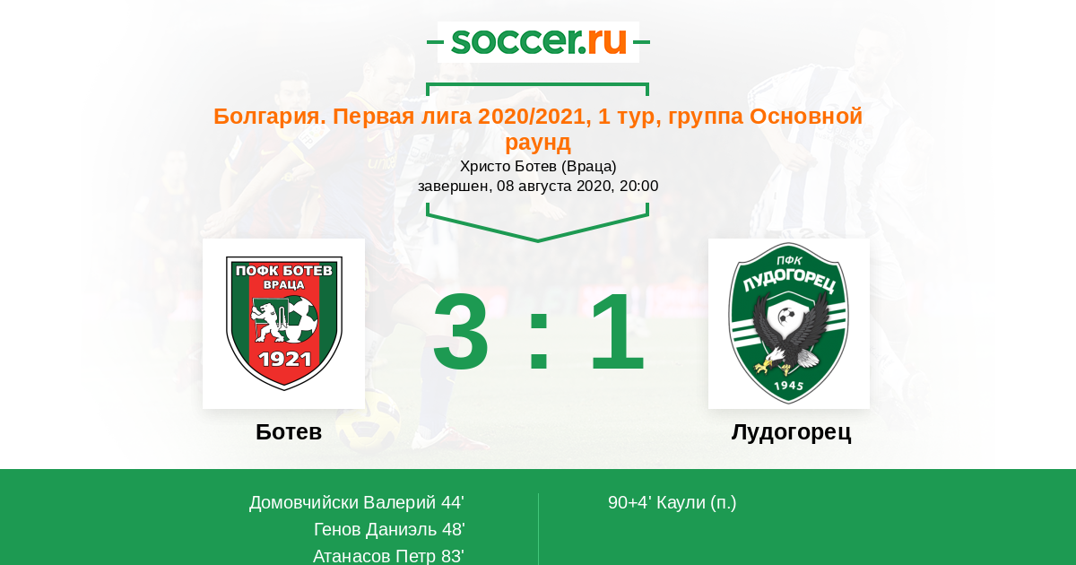 Протокол матча Ботев против Лудогорец