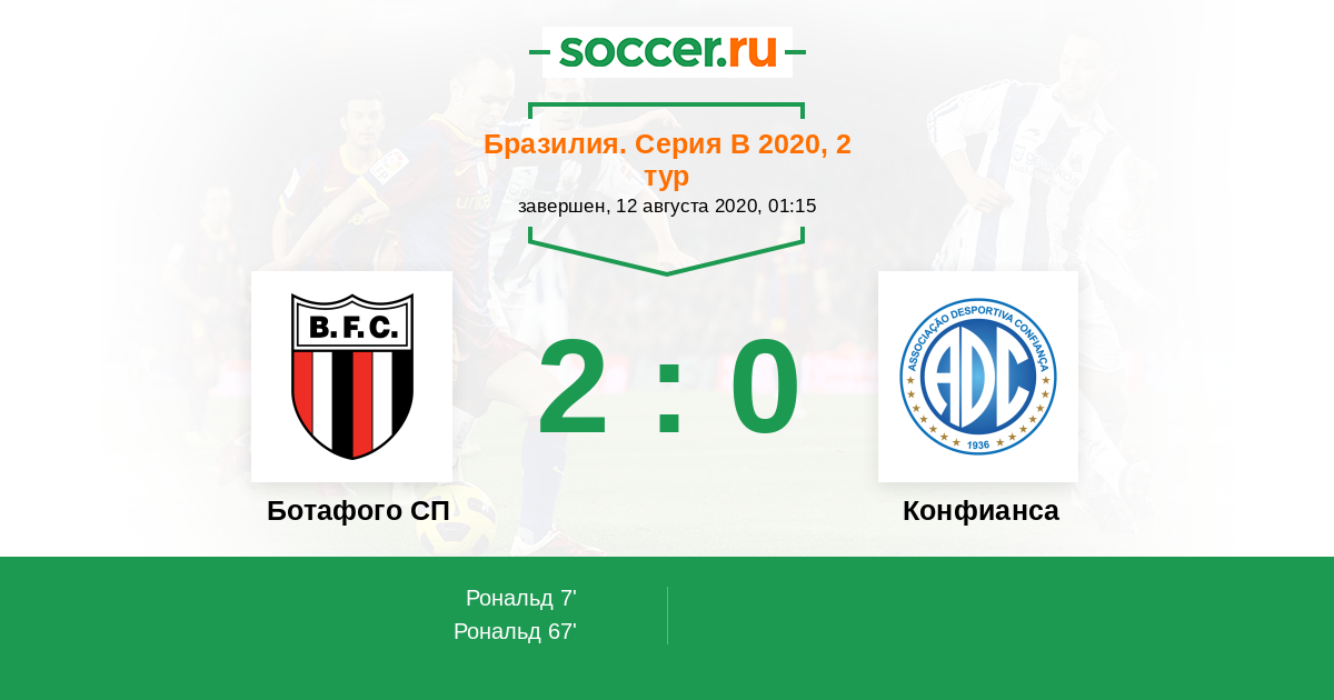 7' (1:0) Рональд (31) (Веллингтон (9))