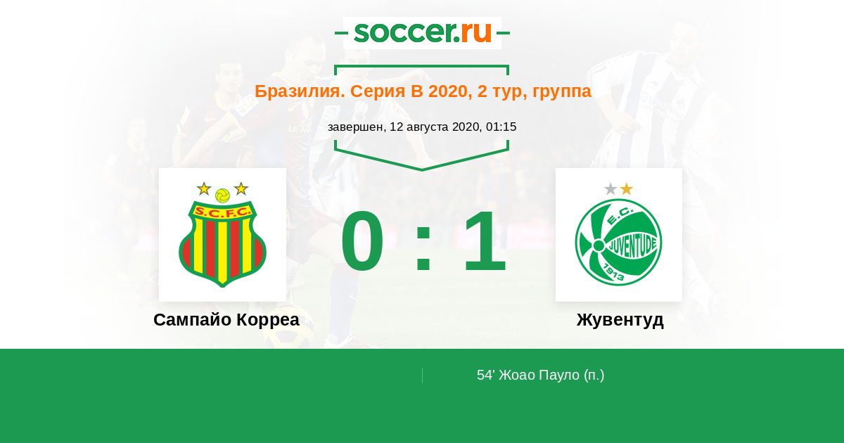 Протокол матча Сампайо Корреа против Жувентуд