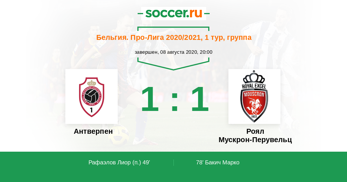Протокол матча Антверпен против Роял Мускрон-Перувельц