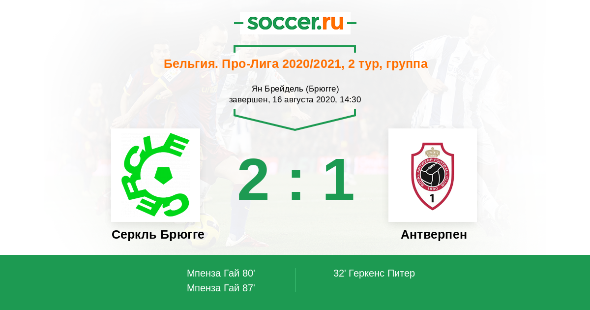 Протокол матча Серкль Брюгге против Антверпен