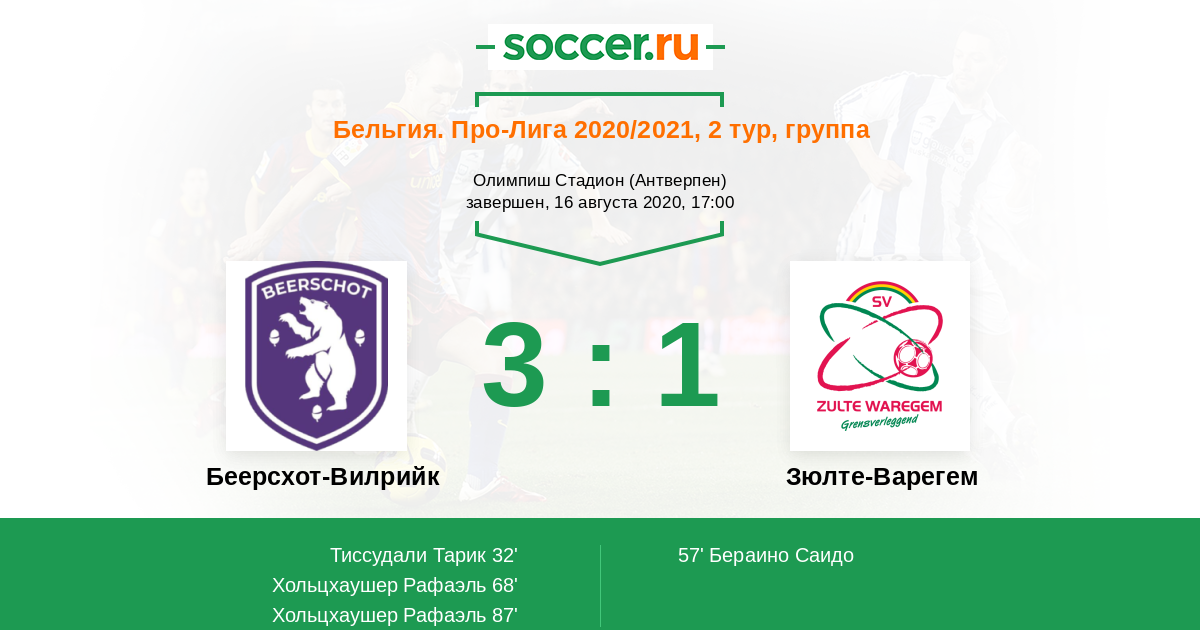 Протокол матча Беерсхот-Вилрийк против Зюлте-Варегем