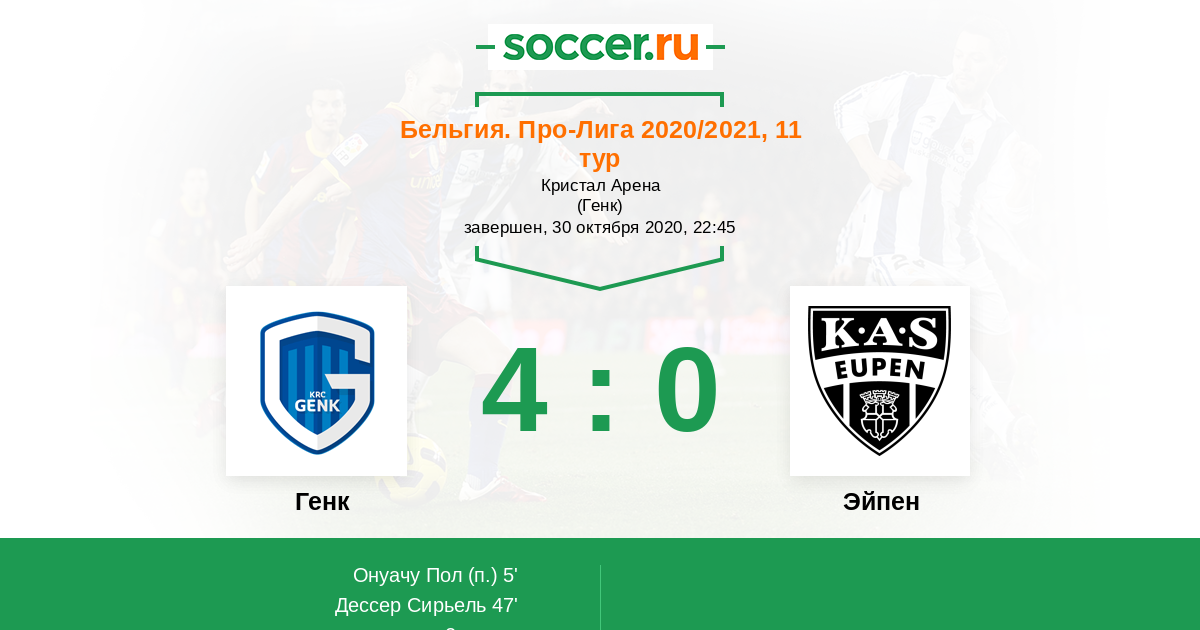 47' (2:0) Дессер Сирьель (9) (Онуачу Пол (18))