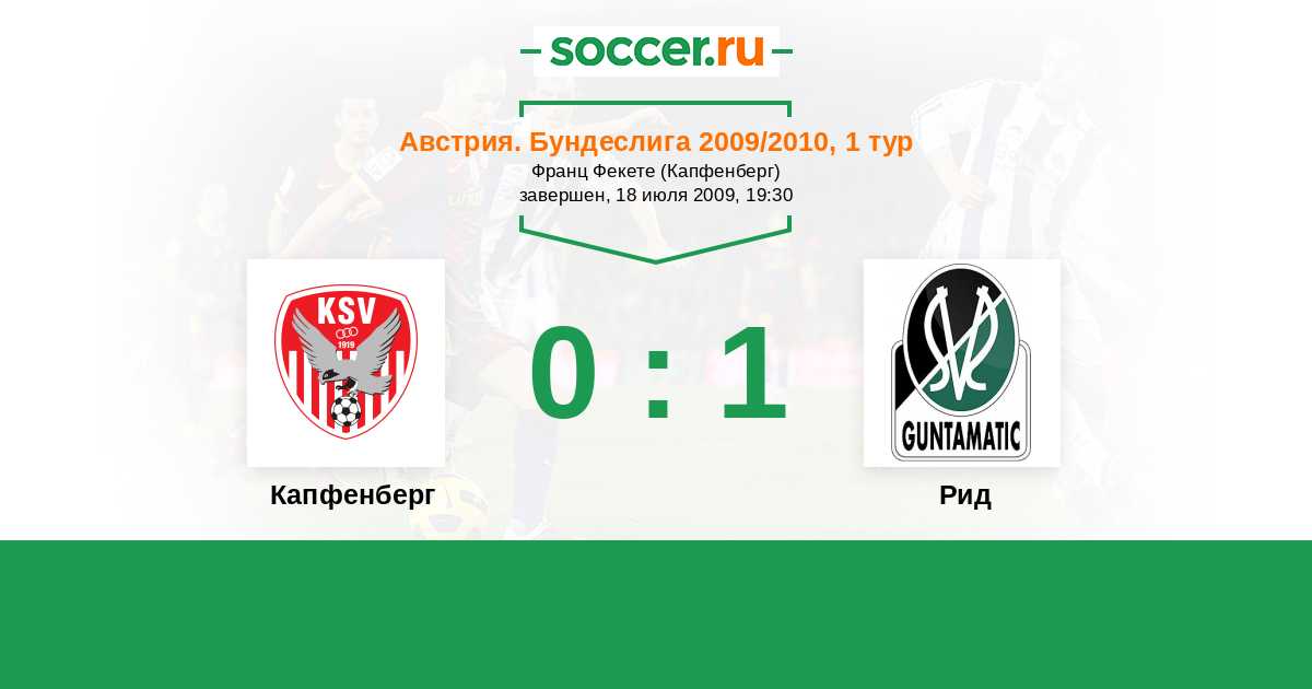 Австрия. Бундеслига 28.08.2010 Рид Логотип футбольный клуб Рид 1:0 Логотип футбольный клуб Капфенберг Капфенберг