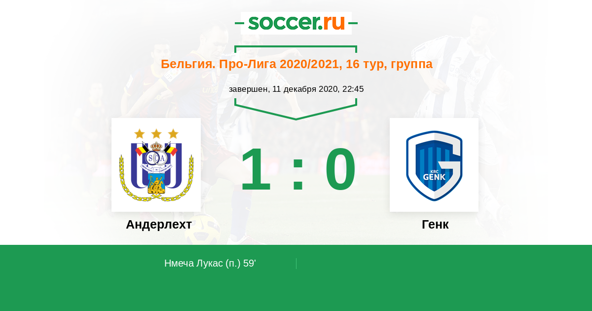 Протокол матча Андерлехт против Генк