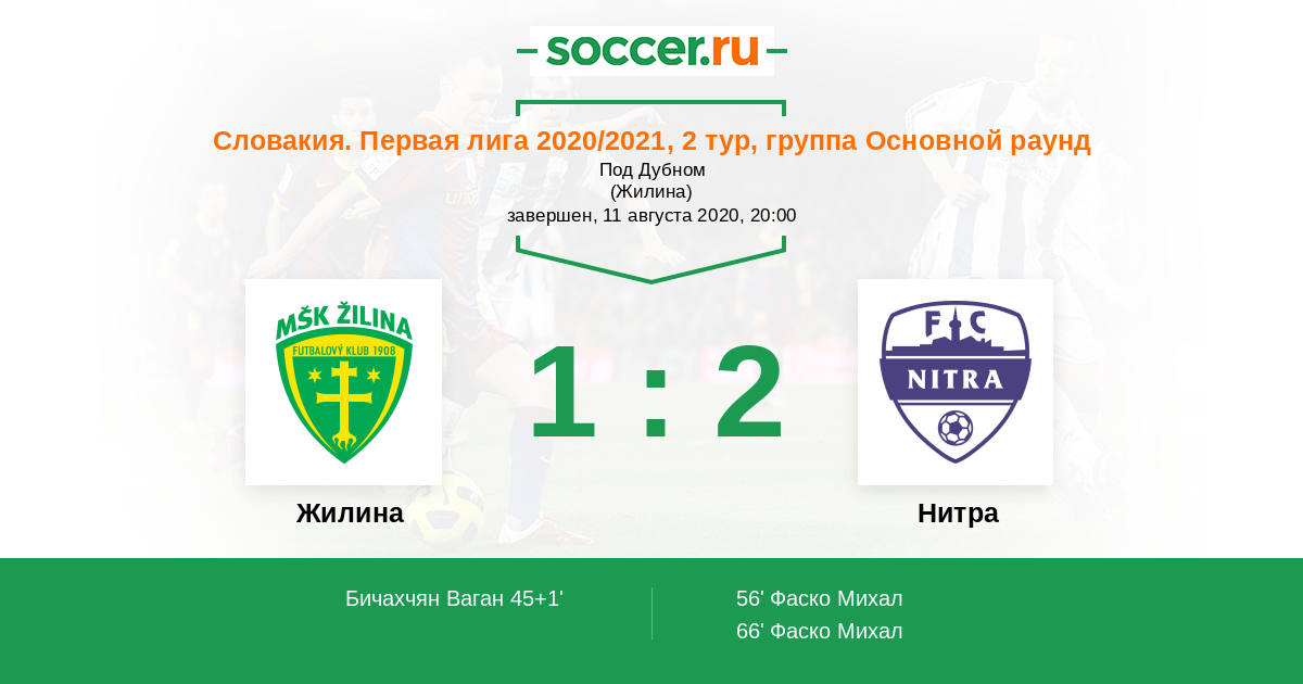 Протокол матча Жилина против Нитра