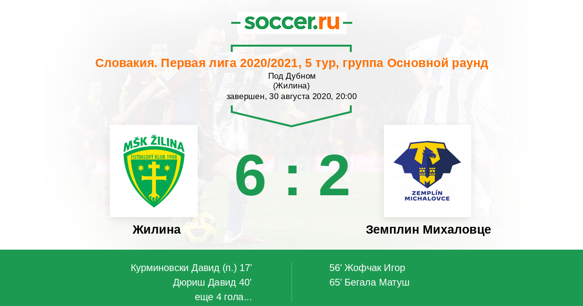 Протокол матча Жилина против Земплин Михаловце