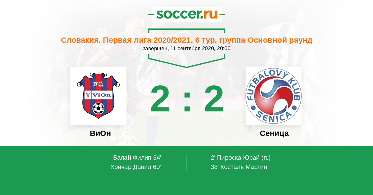 Протокол матча ВиОн против Сеница